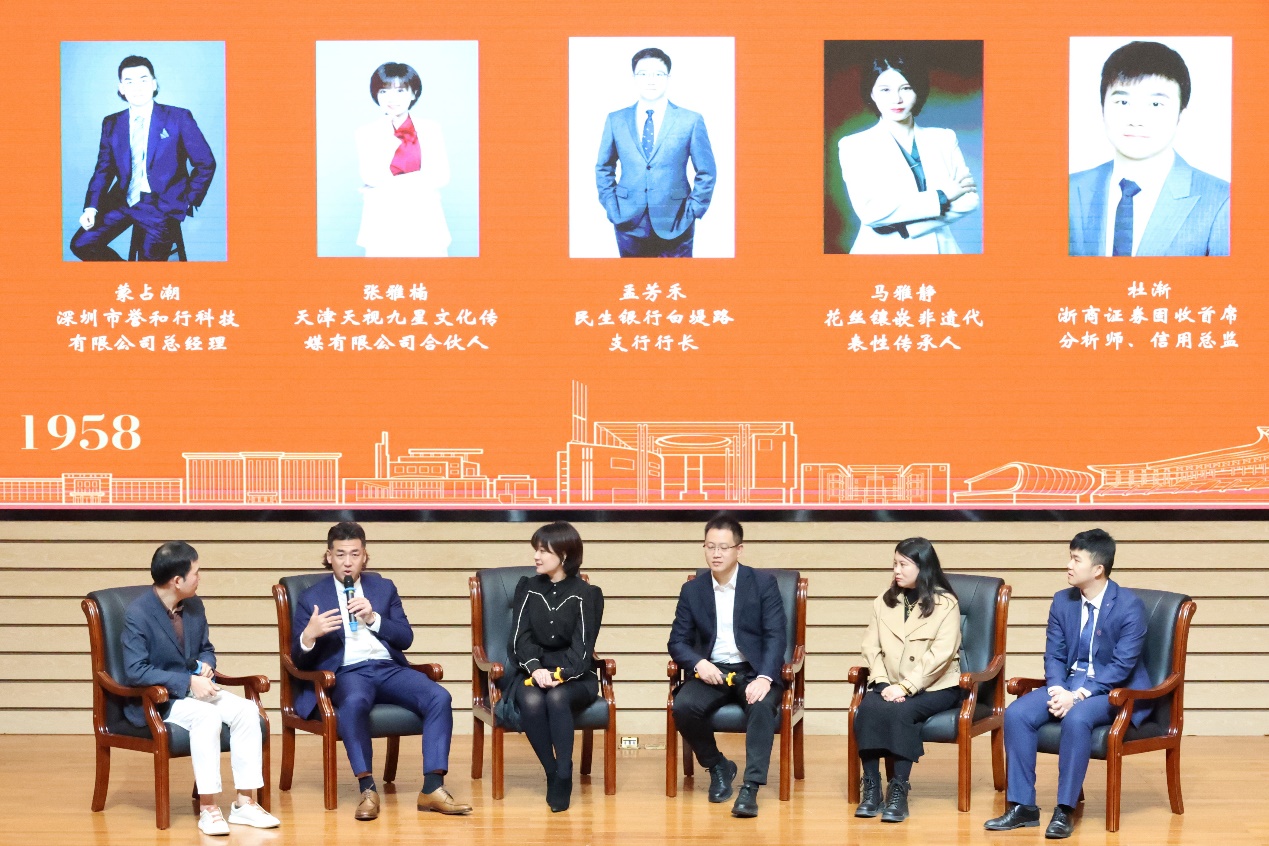 在天津市语言文化国际传播产教融合发展研讨会环节,五位各行各业的杰出校友带来校友沙龙,他们来自投资、金融、传媒、科技、文化传播等领域,结合学院对自己的培养以及个人的奋斗成长历程,分享工作感悟和心路历程,并围绕社会需要、人才培养的一些认识共话学院发展。其后,进入产教融合企业论坛环节,举办此论坛旨在推动文化产业和教育的进一步融合,促进未来学院在人才培养与产业需求上形成更有针对性的对接。来自外研社、上海外语教育出版社、福建亿学教育科技集团、网易天津、金马影视文化发展有限公司的五位企业代表围绕深化产教融合新模式开展研讨,结合外语和传播专业技能与行业发展趋势,表示将与学院共同努力,积极推动产教融合、人才共育、协同创新,为同学们提供实习岗位、就业指导和创业灵感,最后寄语广大人文学子,怀揣梦想,向阳而生。
